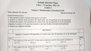 Cbse Class 10 Term 1 Official Sample Paper Solutions Standard Section B Mathematics Analysis Youtube