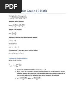 Formulas For Grade 10 Math Pdf Trigonometric Functions Euclidean Geometry